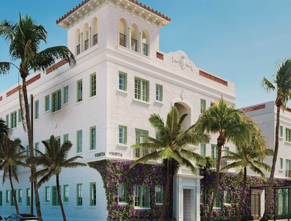 Oetker Collection’s first U.S. hotel is a love letter to Palm Beach. Originally opened as the Lido-Venice in 1926, The Vineta Hotel is a pale-pink Mediterranean Revival icon reimagined with clean lines, airy interiors and soft coastal hues. Paris-based interior designer Tino Zervudachi pared the room count down from 53 to 41 to create oversized, luminous retreats.